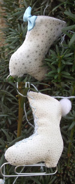 Und nicht das ich faul war, nein ich habe noch eine kleine Winterdeko genäht. Aber davon nur vier Stück, ich denke das kann man mal immer mal wieder nähen sodass man irgendwann einen schönen Ast oder den Weihnachtsbaum voll hat. grins